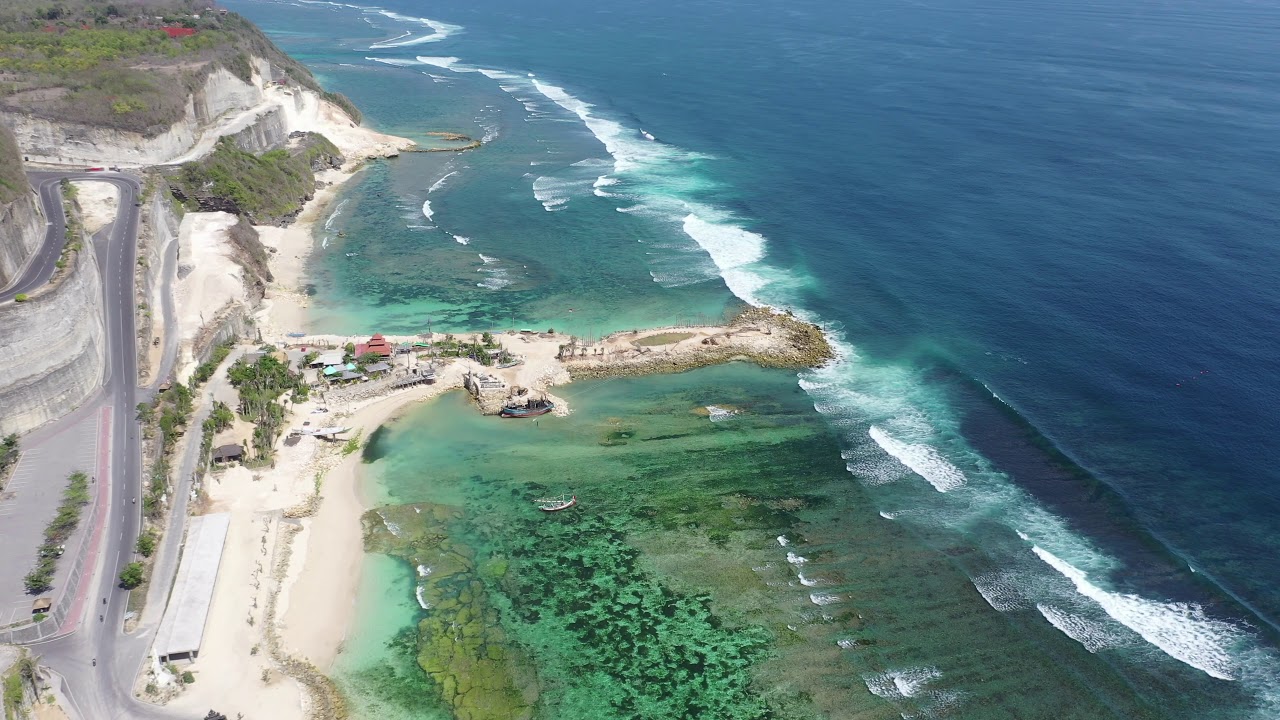 Меласти — это самый южный пляж Бали, поэтому климат здесь более сухой и жаркий. Дорога к берегу вырублена прямо в тридцатиметровых скалах и спускается причудливым серпантином.