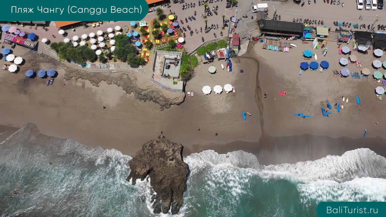 Примечание автора сайта: многие относят пляж Чангу к пляжам с черным песком, но на самом деле там темно-серый и темно-желтый песок. Мы же постарались указать в списке пляжи именно с черным песком. А вообще, пляжи с темным песком расположены на береговой линии от района Чангу и западнее, а так же от района Санур и восточнее. Еще темный песок есть на севере Бали — пляжах Ловина и Пемутеран.
