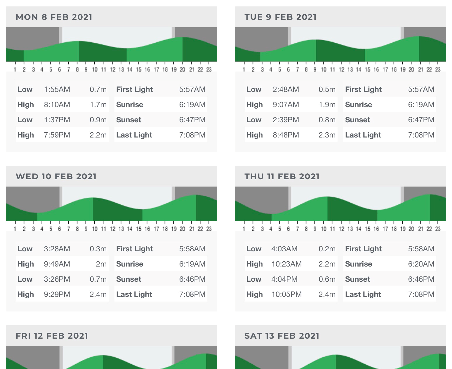 HIGH — это прилив, а LOW — это отлив. И тот и другой происходят дважды в сутки с разницей примерно в 6 часов.