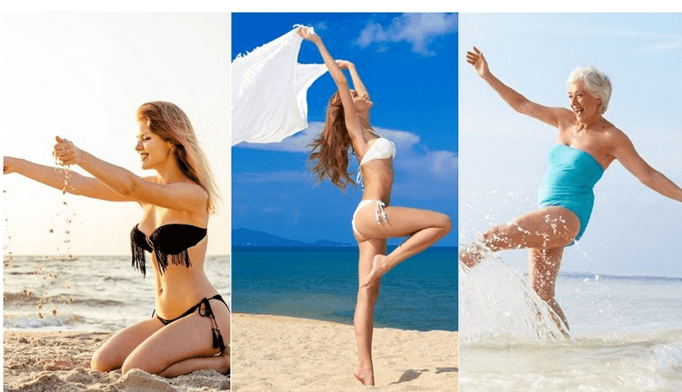 Либо возьмите с собой на пляж шляпу и прикрывайте ею то одну часть тела, то другую. Тогда ваш животик или «не такие, как у всех» ноги никто не заметит: во-первых, дефекты более заметны на прямых линиях, а во-вторых, все они отойдут на задний план под натиском вашего счастливого вида и настроения!